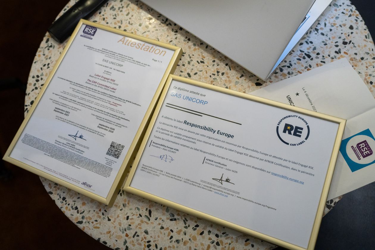 Mercredi 6 décembre 2023, UNICORP s’est vu remettre le label AFNOR – Engagé RSE et son équivalence européenne Responsibility Europe, par Christian Lediouron, Responsable Département Développement régional à l’AFNOR. Le fruit d’une démarche exigeante, en accord avec l’ADN de l’agence et les valeurs portées depuis sa création par sa fondatrice, Muriel Sola, et l’ensemble de ses collaborateurs.